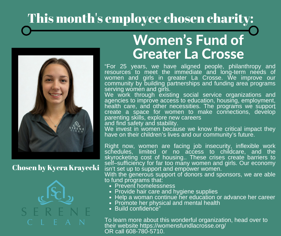 Part of our mission at Serene Clean is to continually give to our local community, whether in monetary donations, free cleanings, or volunteering. That is why each month an employee here at Serene Clean gets to choose a local charity or non-profit organization to make a monetary donation to! We have done this for nearly the entire life of the business, with our first donation happening all the way back in September of 2019, just a few months after opening in April of 2019.